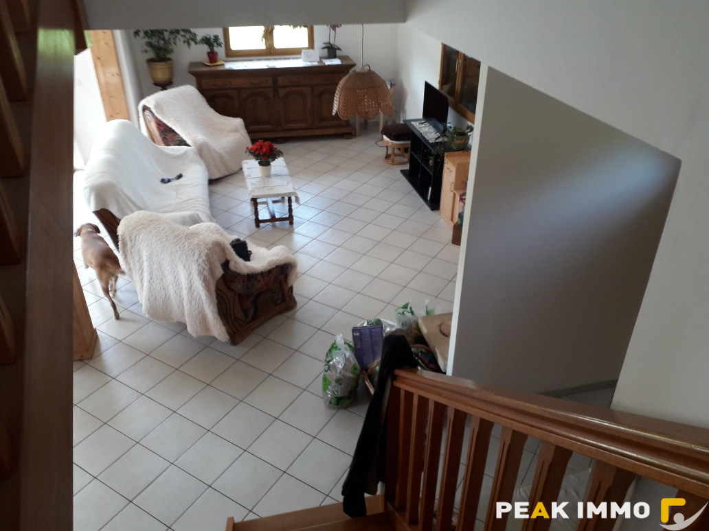 La maison se compose d’un bel espace de vie lumineux avec cuisine ouverte, idéal pour les moments de convivialité. Un premier demi-niveau dessert une salle de bain ainsi qu’un WC indépendant. Le second demi-niveau mène à une mezzanine et à trois chambres, offrant un espace nuit bien distinct et fonctionnel.