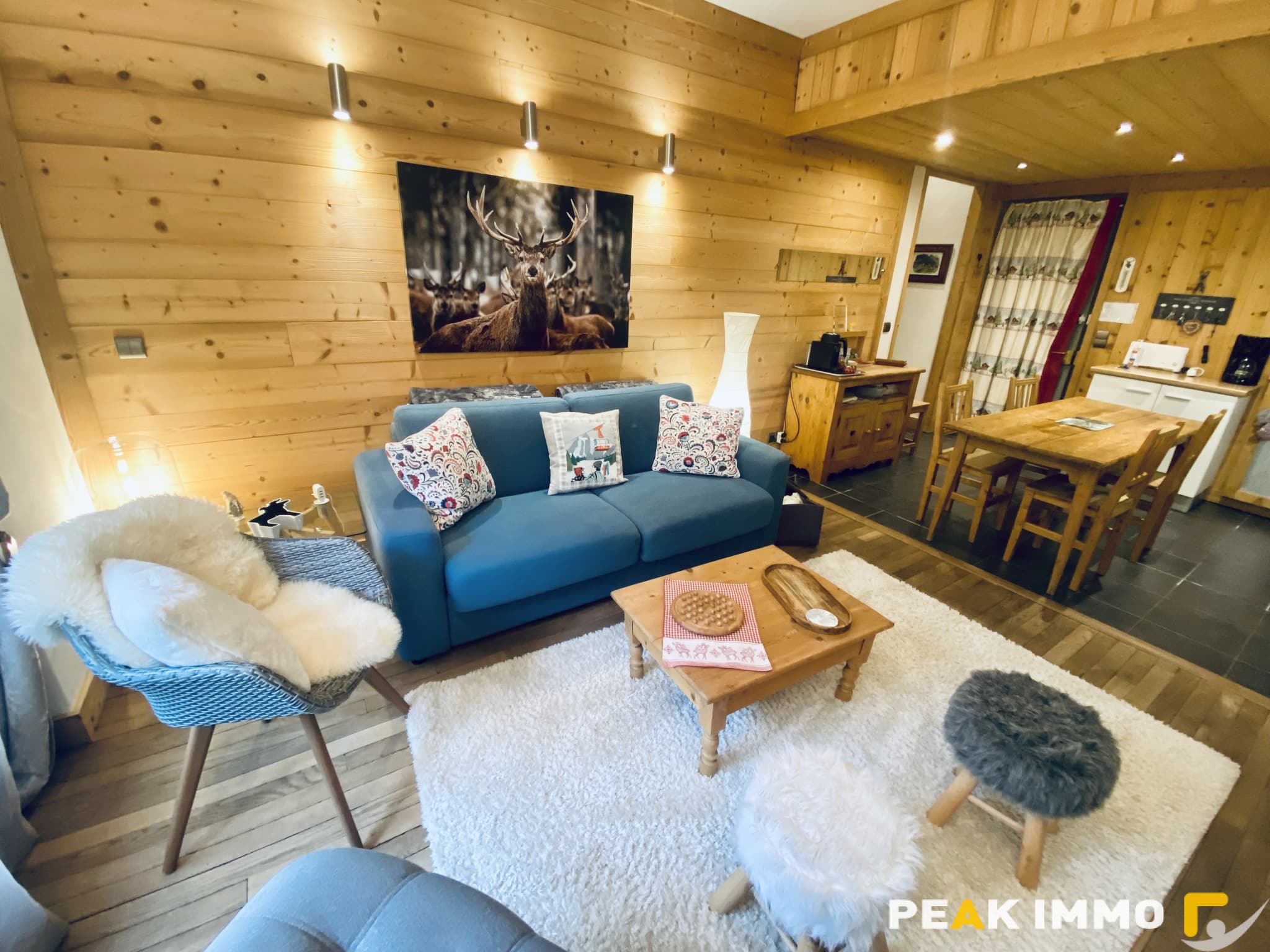 Dans une résidence de caractère, avec parc arboré et tennis privé, tout à côté du lac biotope, au centre de Combloux :