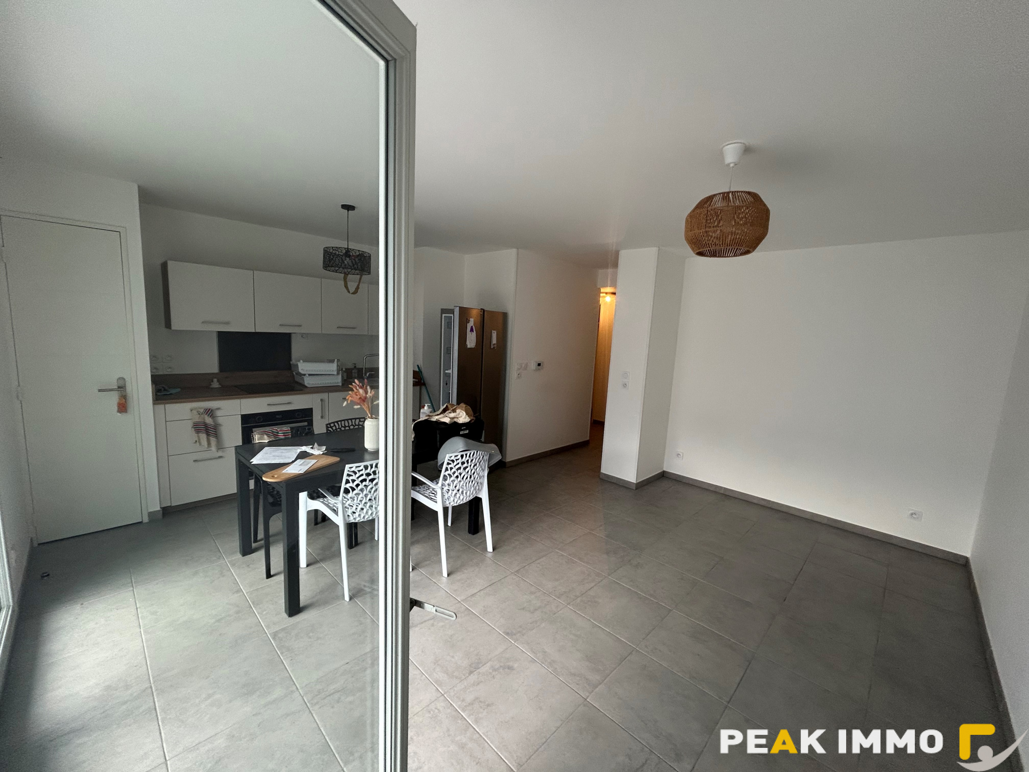 Le logement se compose d’une entrée avec rangement, d’une cuisine équipée moderne avec meubles hauts et bas, table de cuisson, four, lave vaisselle et réfrigérateur-congélateur, donnant sur un séjour agréable et lumineux, d’une chambre avec salle de douche et meuble vasque, et un wc séparé.