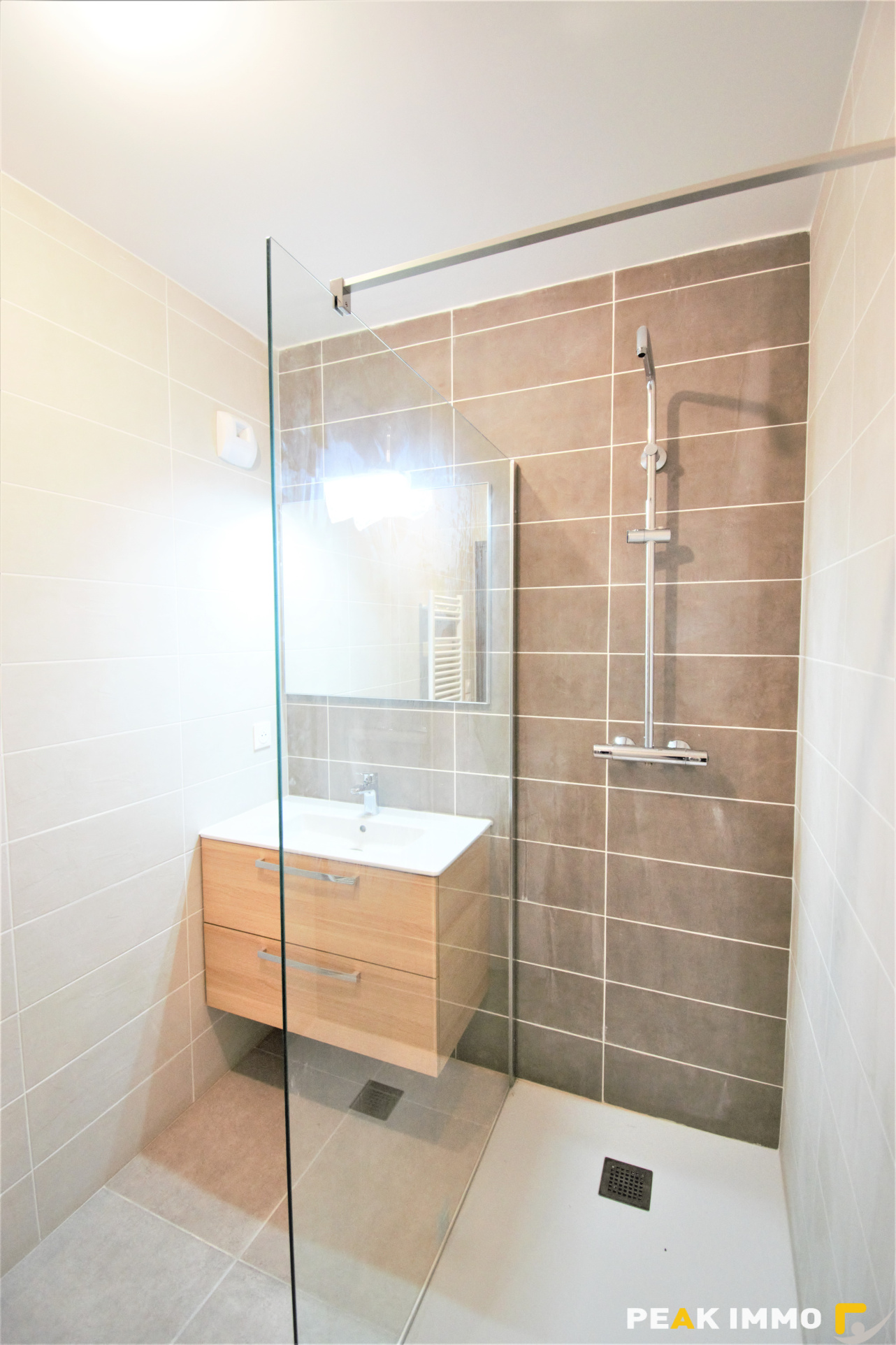 Très bel appartement de type 2, 49 m2 au 4ème étage, dans résidence de standing, proche commerces et centre ville, qui se compose d’une entrée avec rangement, d’un grand séjour lumineux ouvert sur une cuisine équipée, mobiliers hauts et bas, four, hotte, plaque à induction et lave vaisselle, avec accès sur une véranda de 10m2, une chambre spacieuse avec placard aménagé, une salle de douche avec meuble vasque et douche à l’italienne, et un wc indépendant.