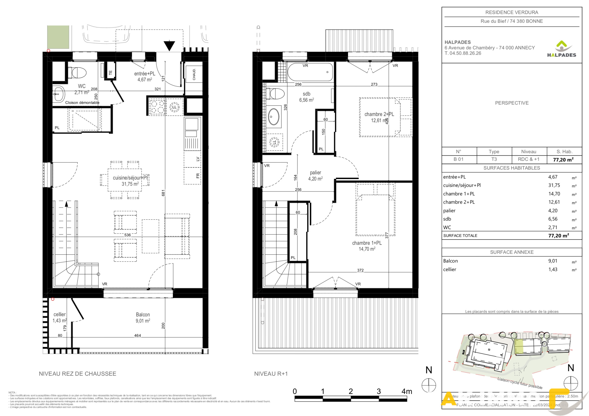 Accessible directement depuis l’extérieur (sans passé par des communs) ce logement comprend un premier niveau de 38m2 comprenant une grande pièce de vie donnant sur un balcon de 9m2 avec vue sur les espaces verts et une partie nuit à l’étage avec deux grandes chambres et la salle de bains.