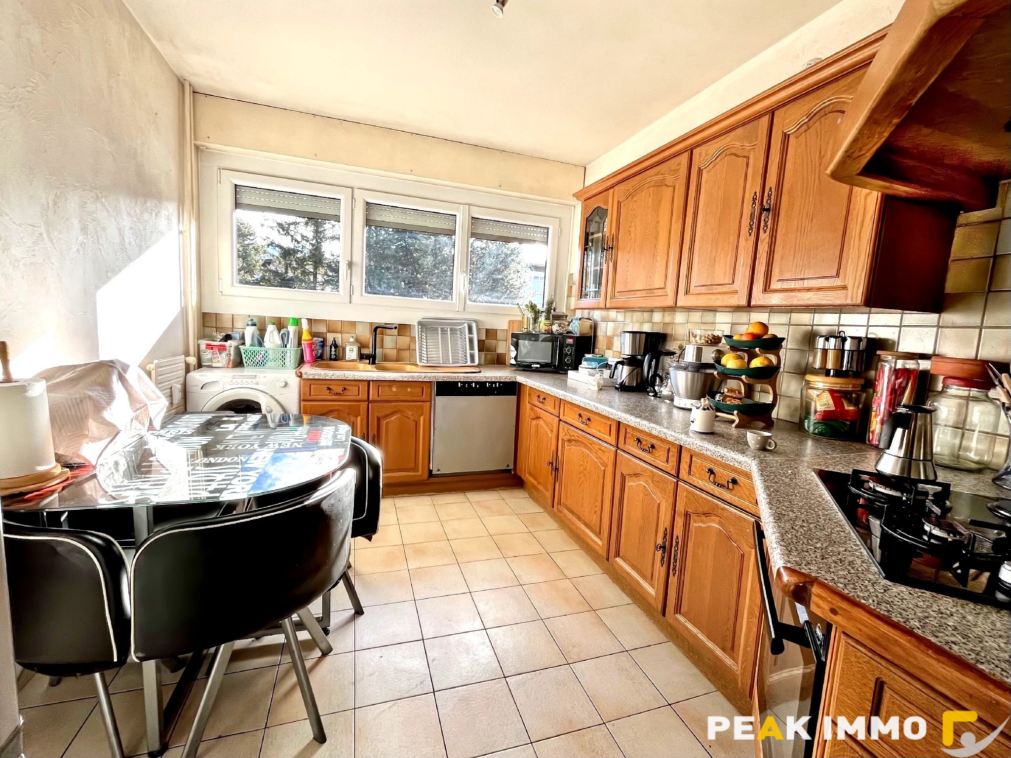 – cuisine séparée, salon-séjour ouvrant sur le balcon plein sud, 3 belles chambres, salle de bains et WC séparés.