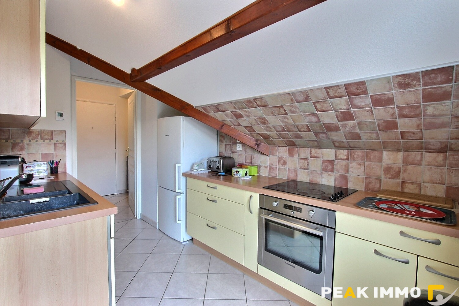 A Talloires, dans une copropriété bien entretenue, au 3ème et dernier étage, un appartement T2 de 47,05 m2 comprenant une entrée avec placard, un séjour avec cuisine équipée donnant sur un balcon, une chambre avec placard, un WC, une salle de bains. En annexes se trouvent un garage avec mezzanine et une place de stationnement. Disponible début mai.