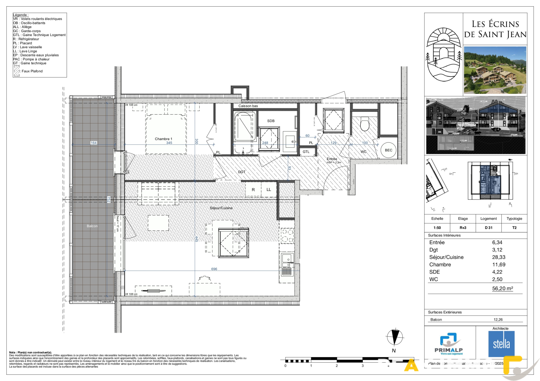 Découvrez, au coeur du programme neuf Les Ecrins de Saint-Jean, cet appartement T2 de 56.20 m2 avec balcon. Agréable pièce vie de 28.33 m2. Exposition Est. Une cave complète ce bien. Il est possible d’acquérir un garage en sus.