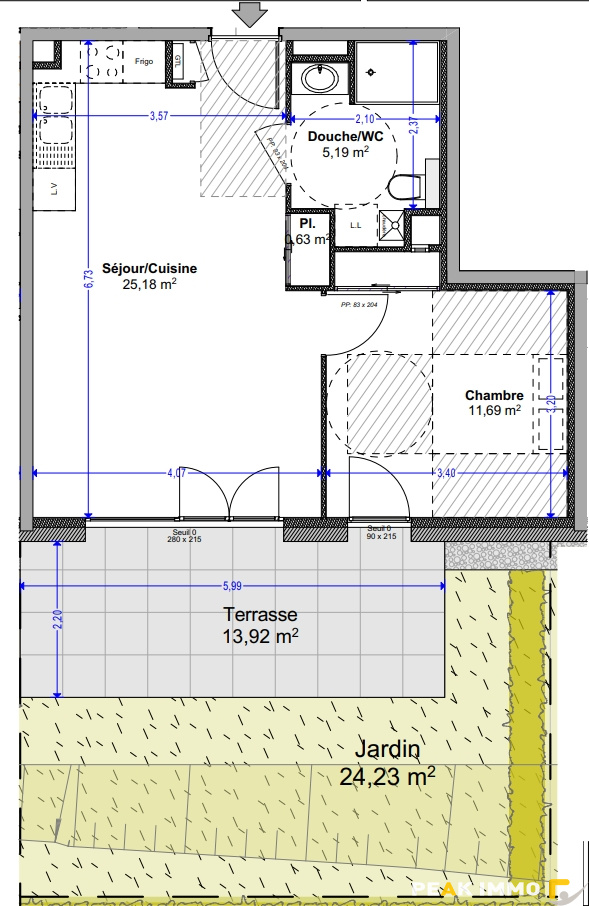 T2 Neuf en Rez-de-Jardin 42,69 m2 + Terrasse & Jardin Rési