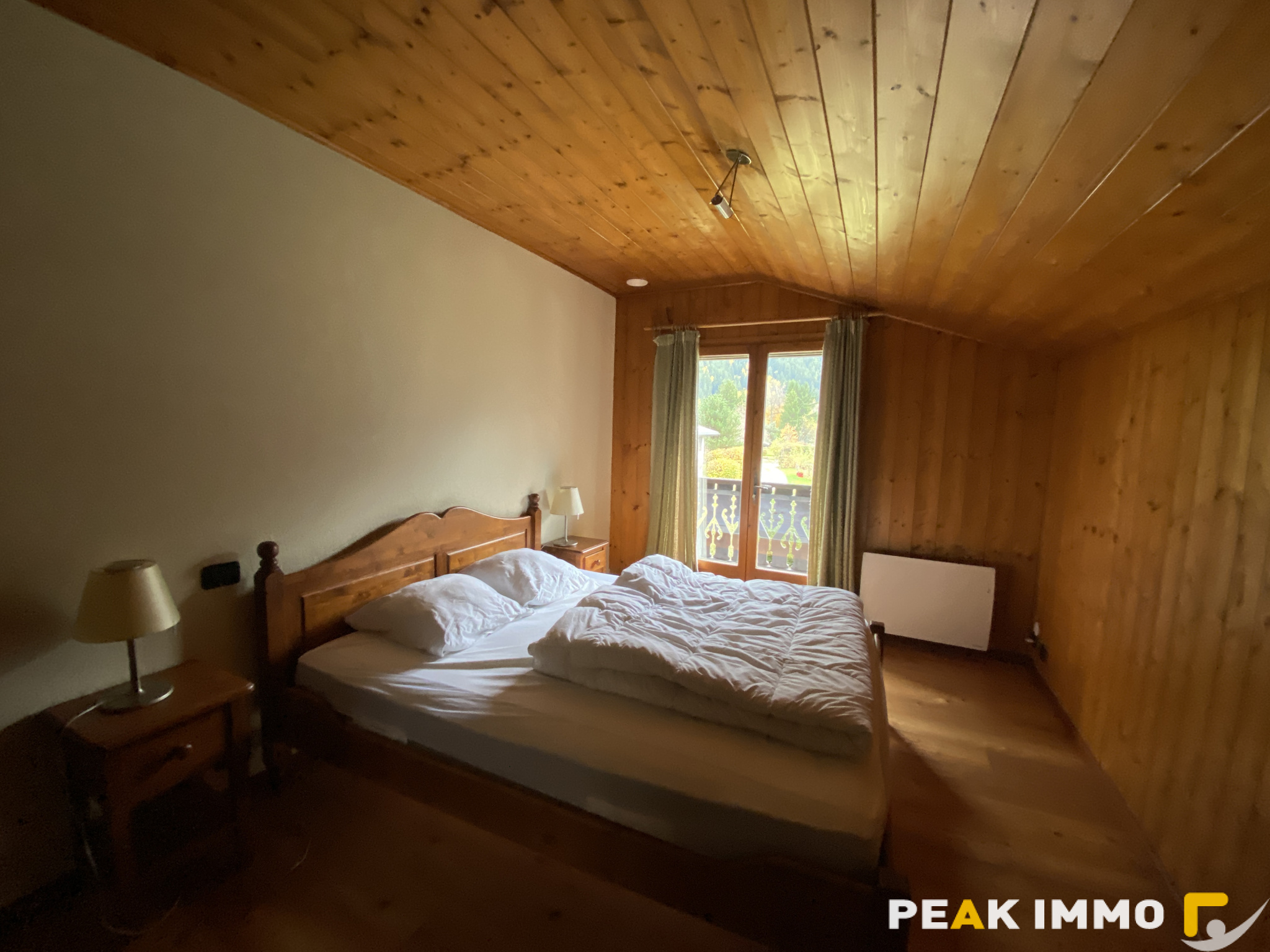 CHAMONIX – Plaine des Praz – Appartement duplex dans un chalet – Entrée – toilettes – séjour/salle à manger avec cuisine meublée et équipée ouverte sur le séjour – Accès terrasse E/S