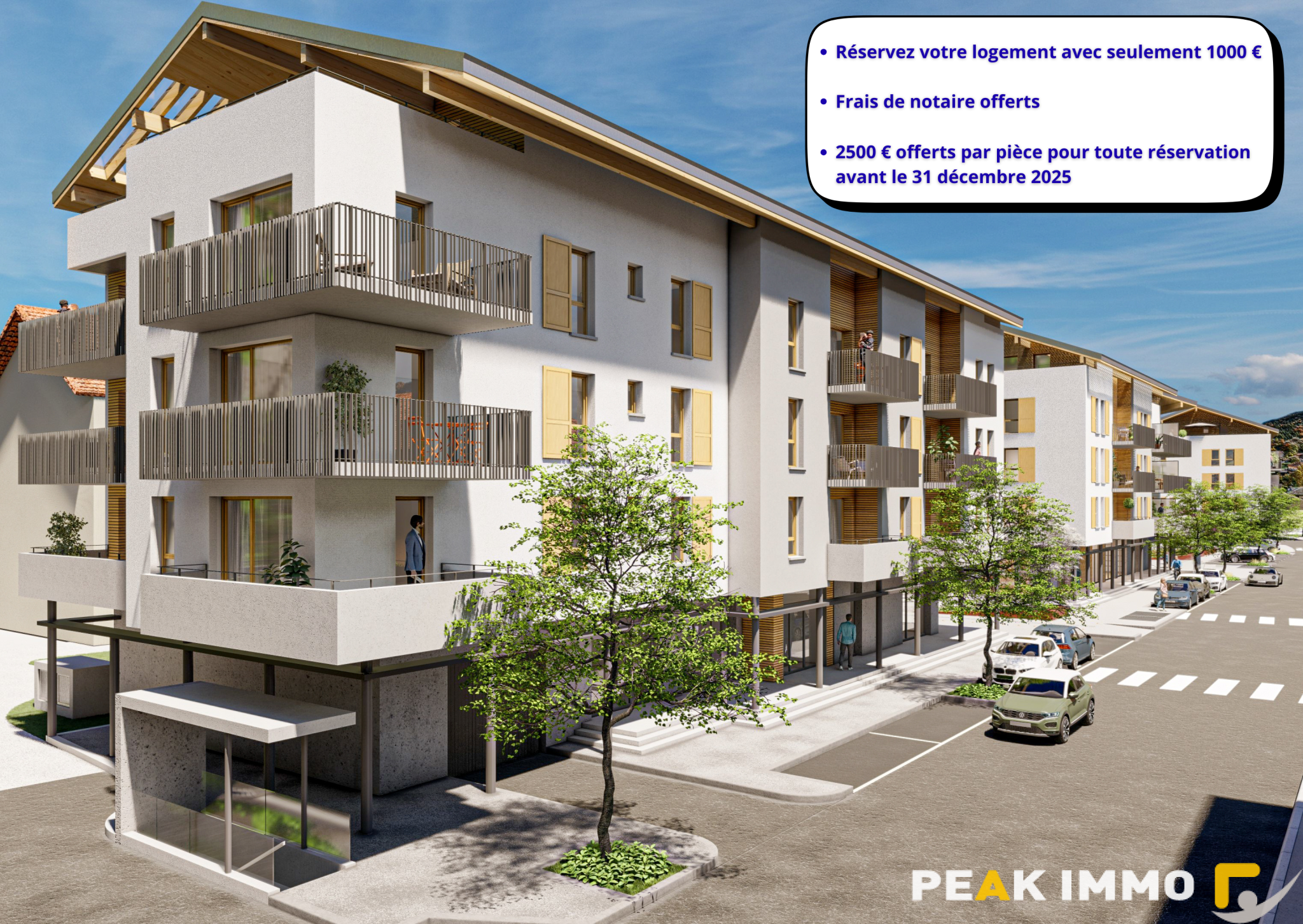 Bienvenue dans le nouveau programme immobilier neuf, L’Idylle, niché au coeur de Thônes ! Découvrez cet appartement de 2 pièces, offrant une superficie intérieure habitable de 42,09m², au sein d’un cadre exceptionnel. Ce charmant logement se compose d’une cuisine, d’un séjour spacieux de 21,60 m², d’une chambre, d’une salle de bain moderne et d’un WC. Pour profiter des journées ensoleillées, une agréable terrasse de 5,37m² s’ouvre à vous. Les prestations de qualité de cet appartement neuf comprennent des menuiseries en bois pour une touche écologique, des volets battants en bois ou roulants en aluminium électriques, assurant votre confort au quotidien. La sécurité est également une priorité avec des portes palières à serrure 3 points A2P*. Ce bien vous offre également l’avantage d’une cave en sous-sol, ajoutant un espace pratique pour vos besoins de stockage. Situé au 1er niveau d’un bâtiment de 4 étages, cet appartement est doté d’un ascenseur pour votre plus grande commodité. Ne manquez pas cette opportunité exceptionnelle d’acquérir un logement neuf dans un cadre idyllique. Contactez-nous dès maintenant pour découvrir tous les avantages qu’offre cet appartement au sein du programme L’Idylle.