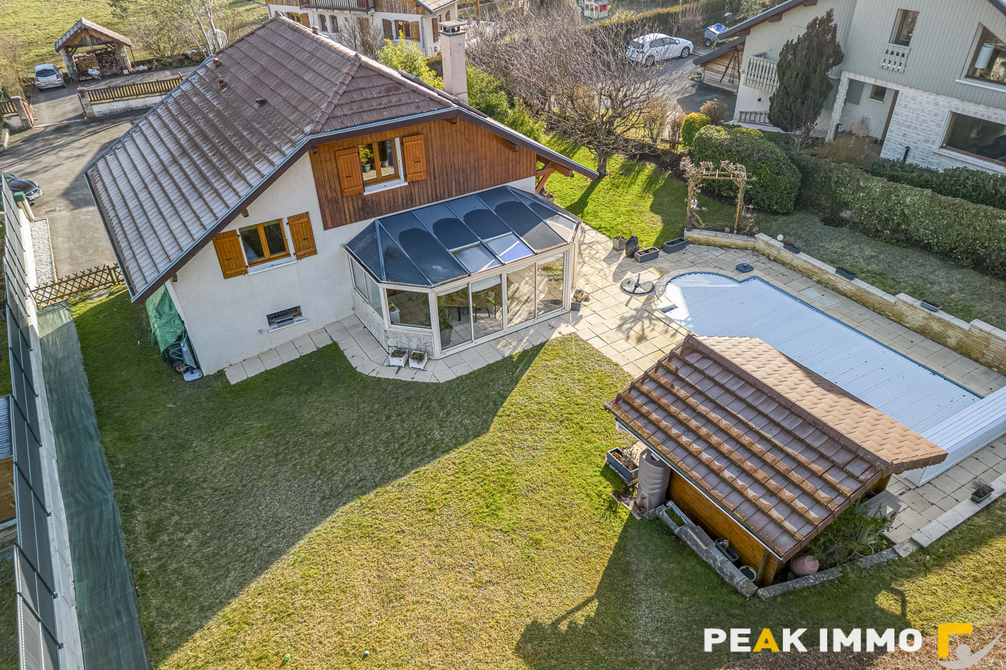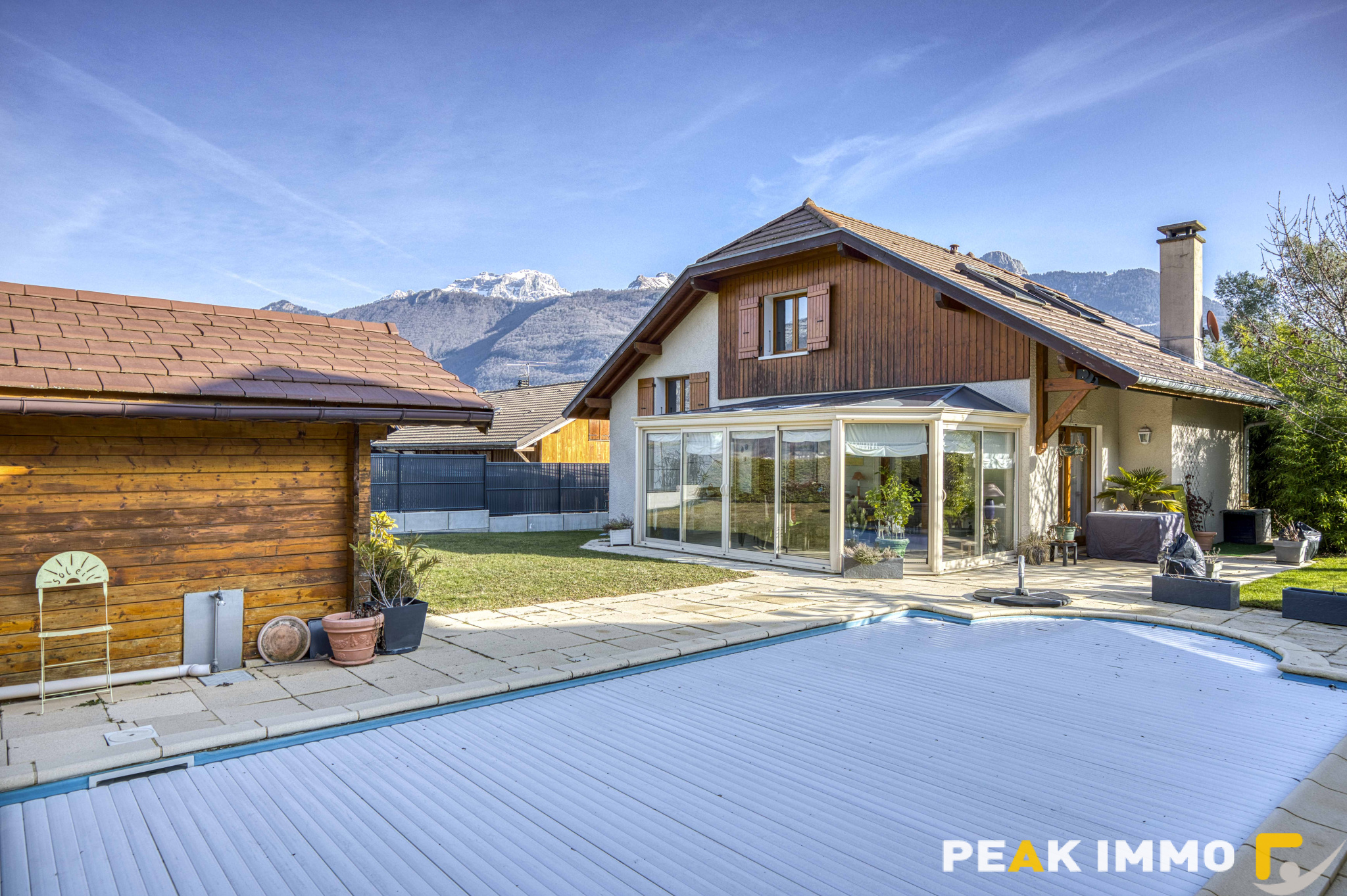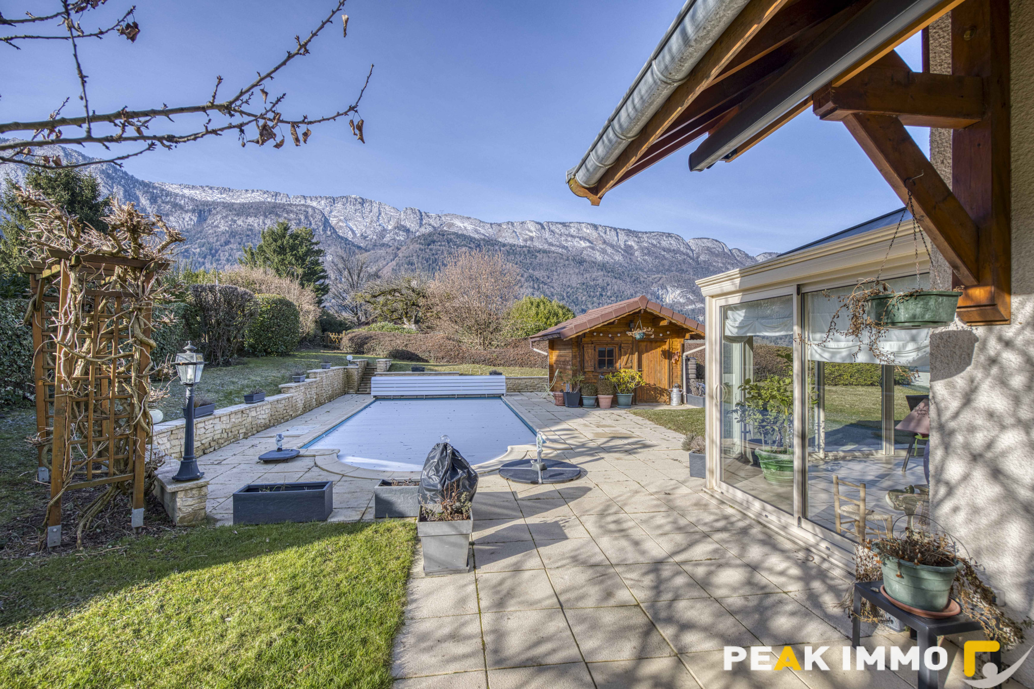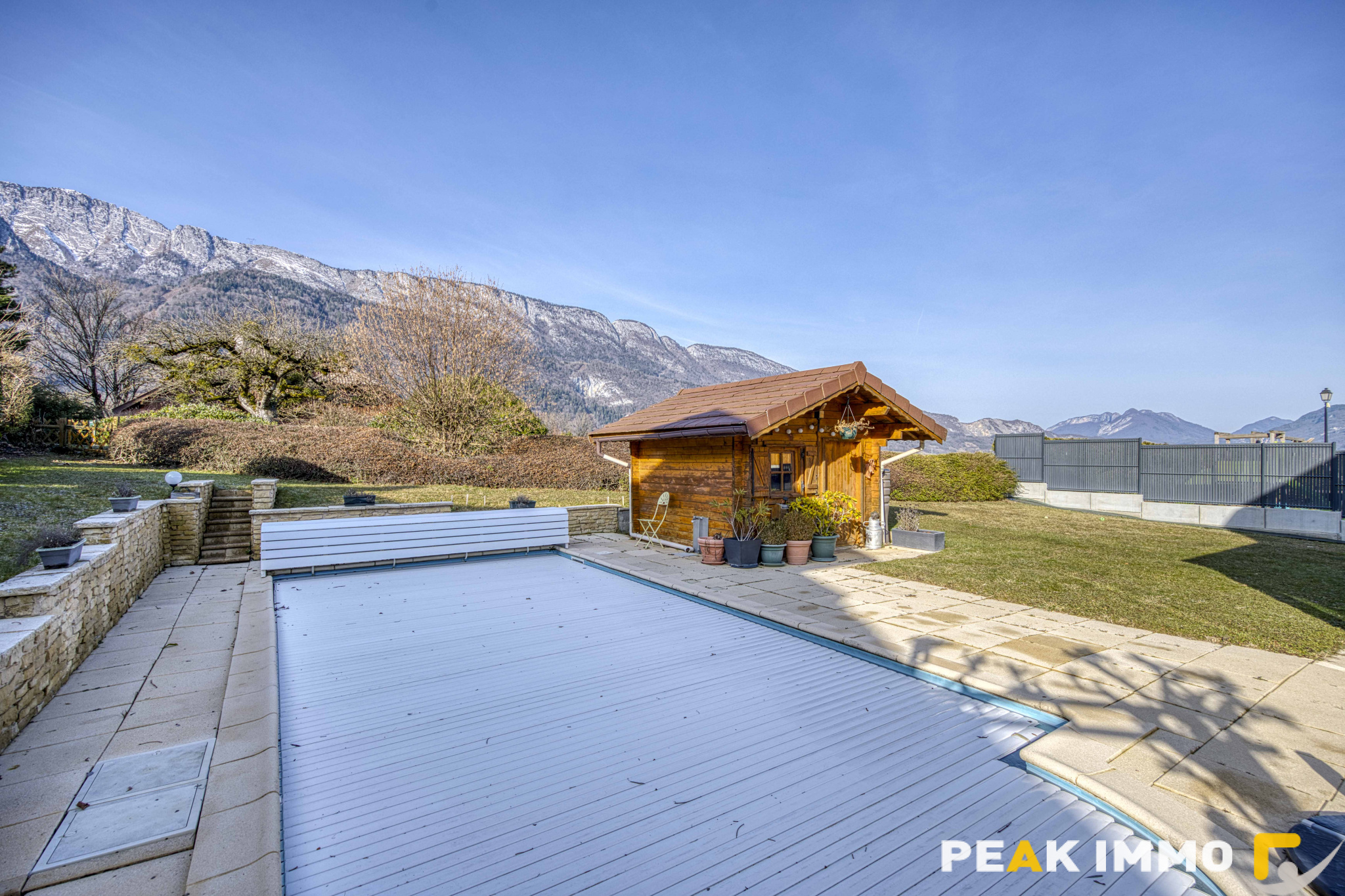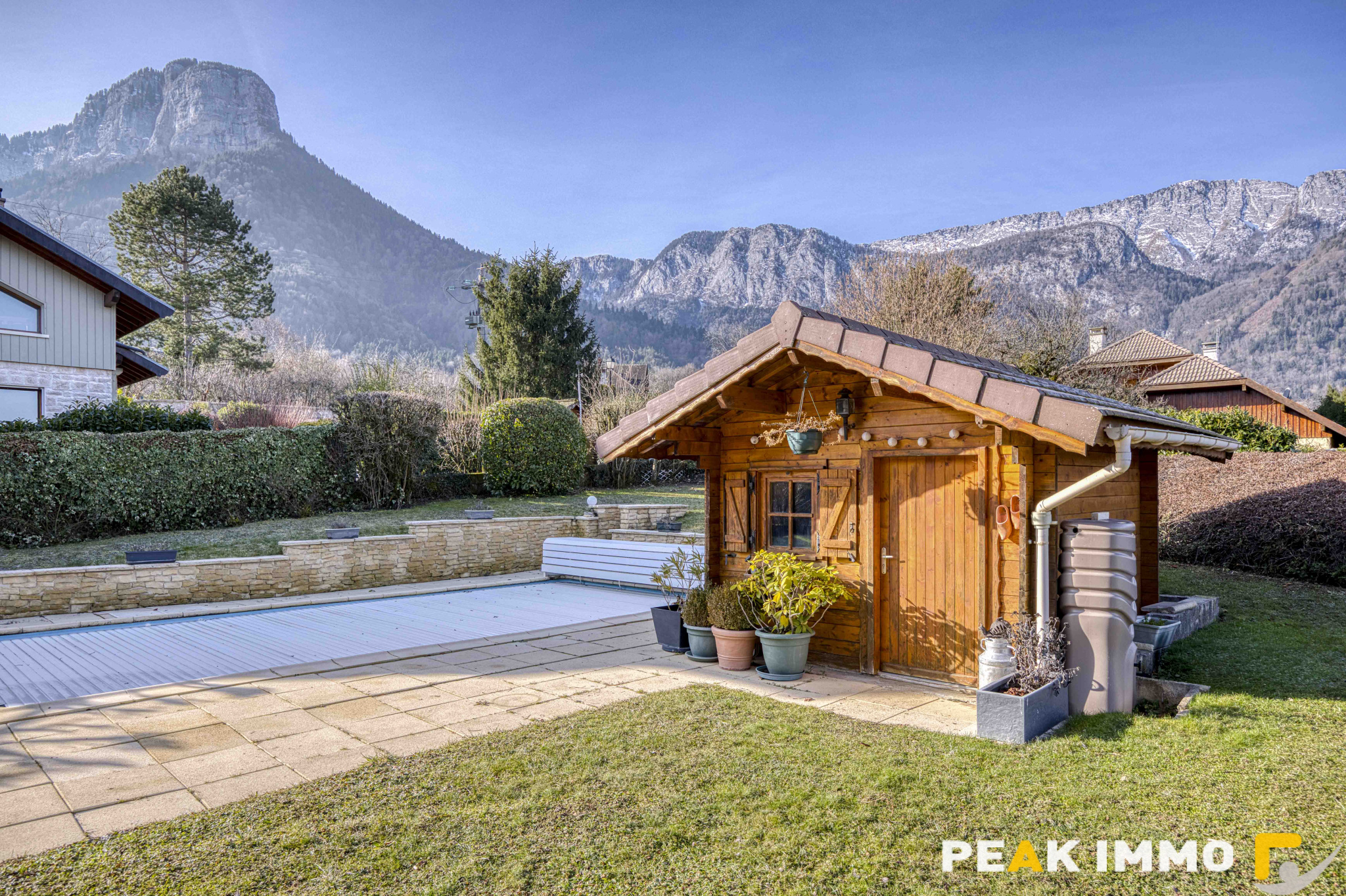 A l’extérieur, le jardin soigneusement entretenu est un véritavble havre de paix avec sa piscine chauffée (pompe à chaleur individuelle).