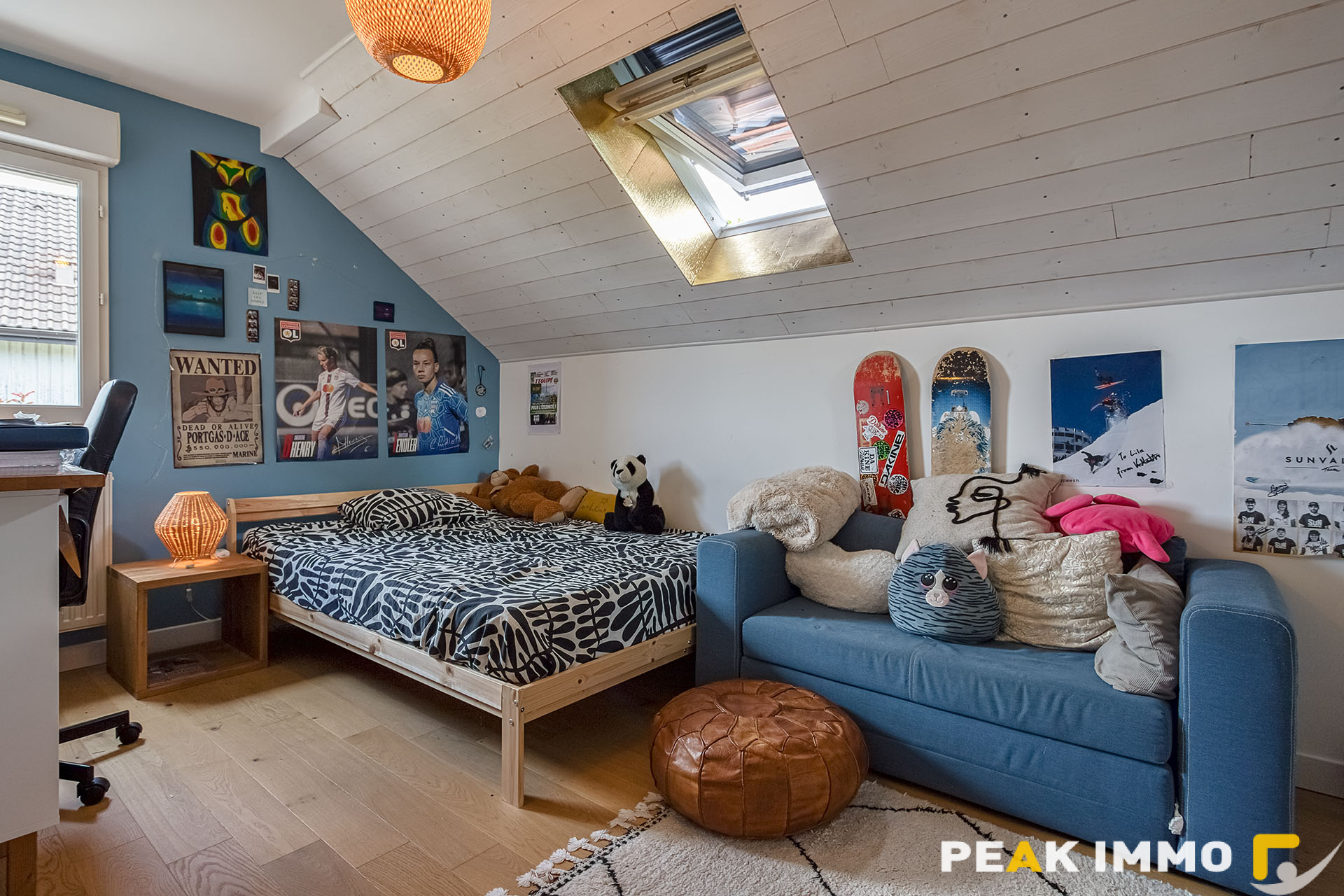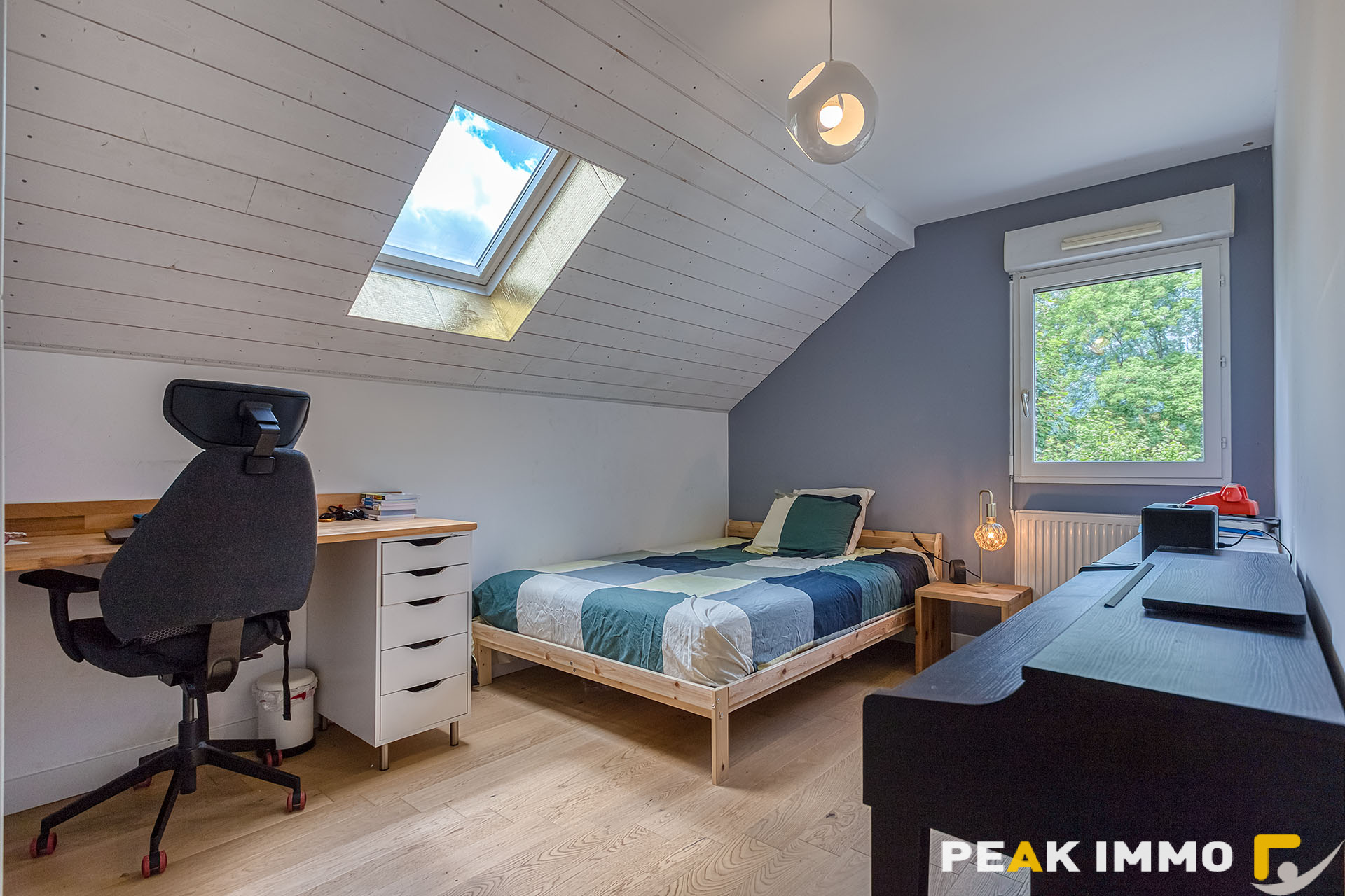 À l’étage, trois grandes chambres ainsi qu’une salle d’eau avec WC complètent un agencement intérieur pensé pour offrir confort et fonctionnalité.