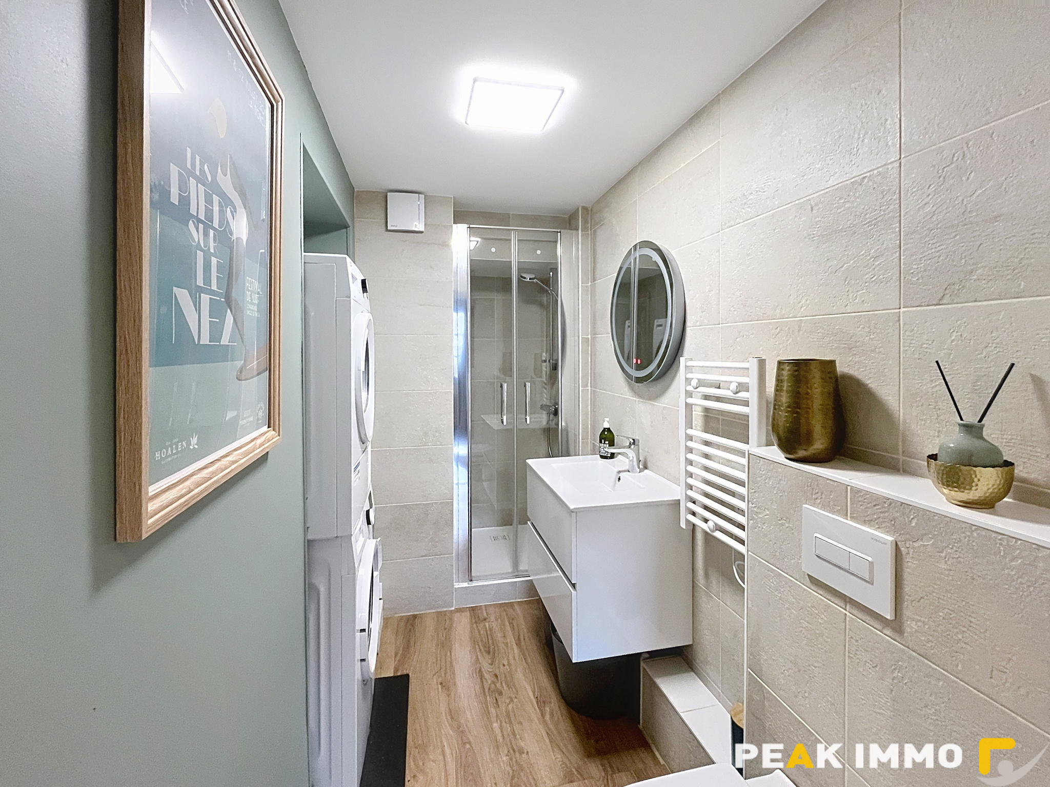 Un abri de jardin de 9 m2 et une place de parking privative complètent ce bien d’exception.