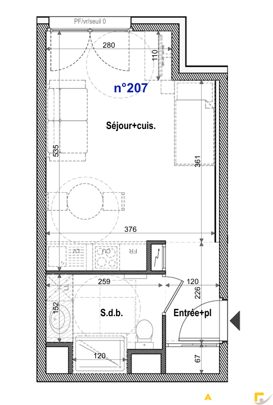 – Entrée avec placards : 3.52 m2